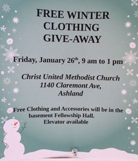 Christ United Methodist Church will once again have a FREE clothing giveaway this Friday, January 26th from 9 to 1 in their Fellowship Hall. If you know someone in need of clothing please pass along this information. What a fabulous program for our c
